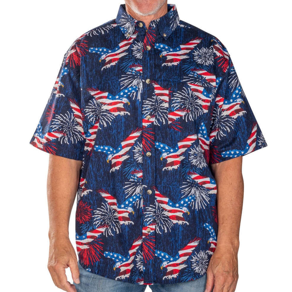 When you love your country, you want to show it off in style. With our collection of men's patriotic button-up shirts, show off your sense of patriotism and sense of style in one easy addition to your wardrobe. Perfect for when you want something a bit dressier than a basic tee yet still comfortable and casual enough for a laid-back appeal, these men's American flag button-up shirts are the perfect balance between casual and dressy for your summertime look.